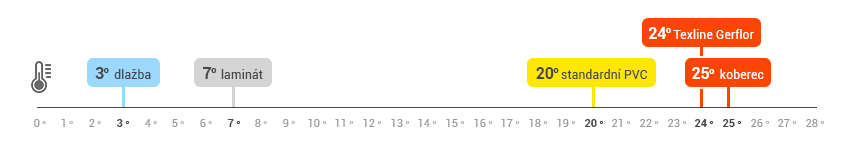 PVC Texline je vhodné i do dětských pokojíčků, koutků pro děti a všude tam, kde si děti hrají na zemi nebo se batolí. Nestudí a teplota jeho povrchu v domácím prostředí je téměř srovnatelná s koberci.